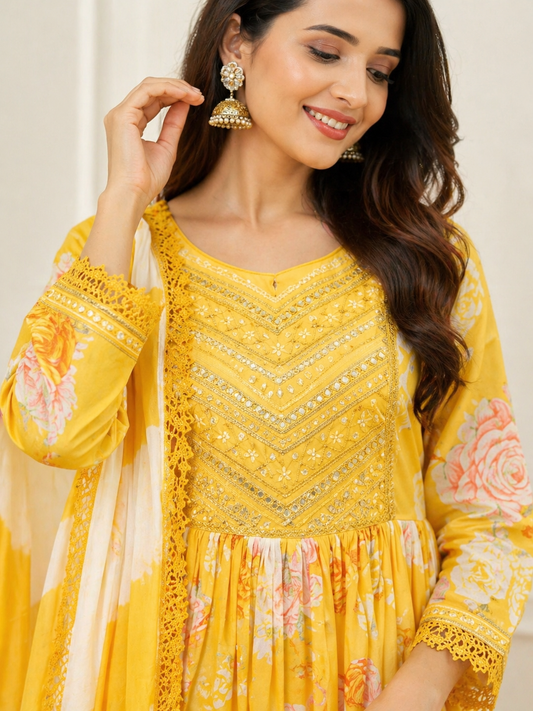 Embroidered Jaipuri Hand Block Printed Daily Wear Kurta Set
